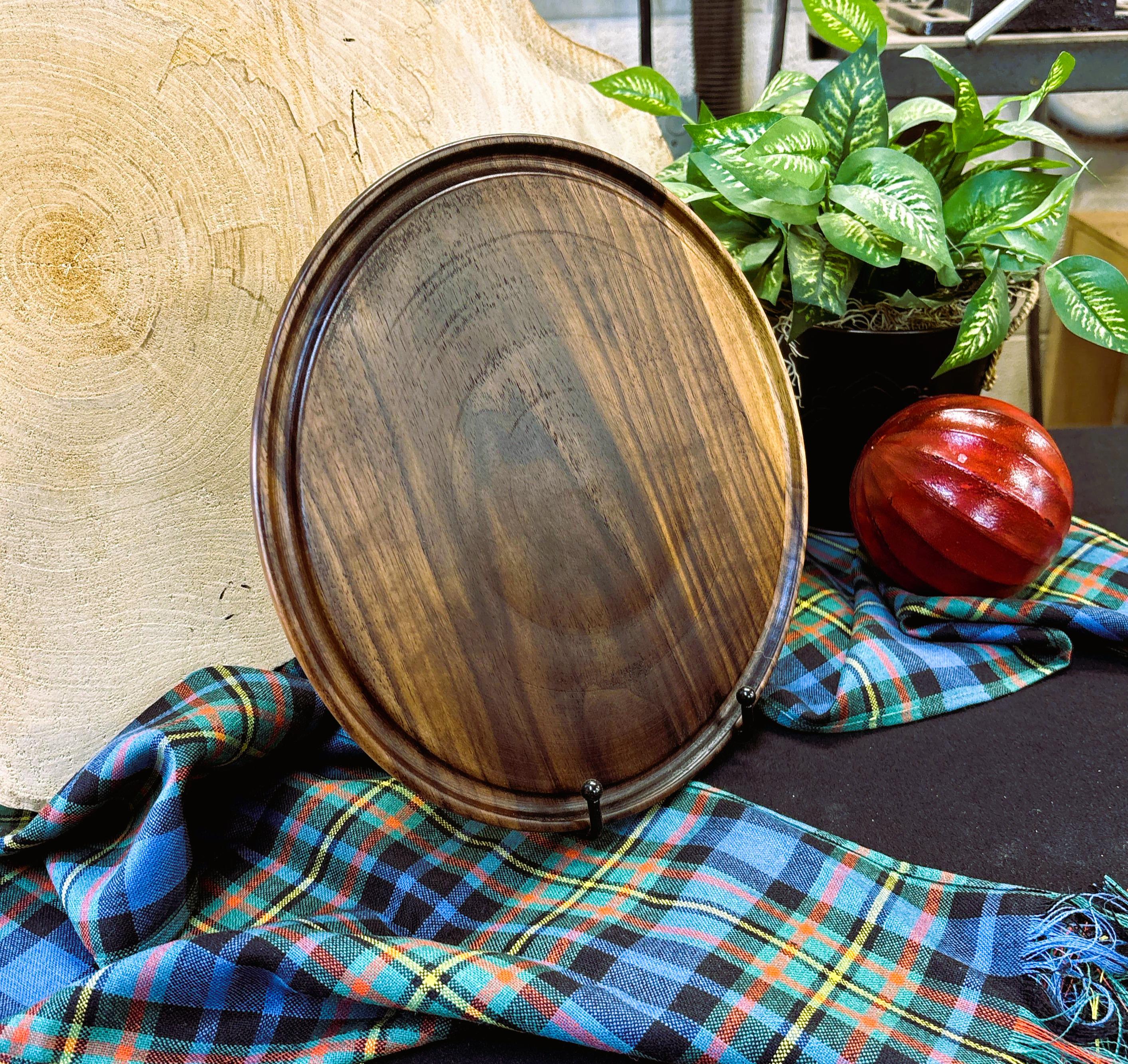 This 11" Round Walnut cutting board will become the workhorse in your kitchen. Walnut wood is a hard surface that will stand-up to years of use while retaining its beauty and durability. The beauty of the wood grain may temp the owner to set aside for decoration purposes - but this board is ready for use.