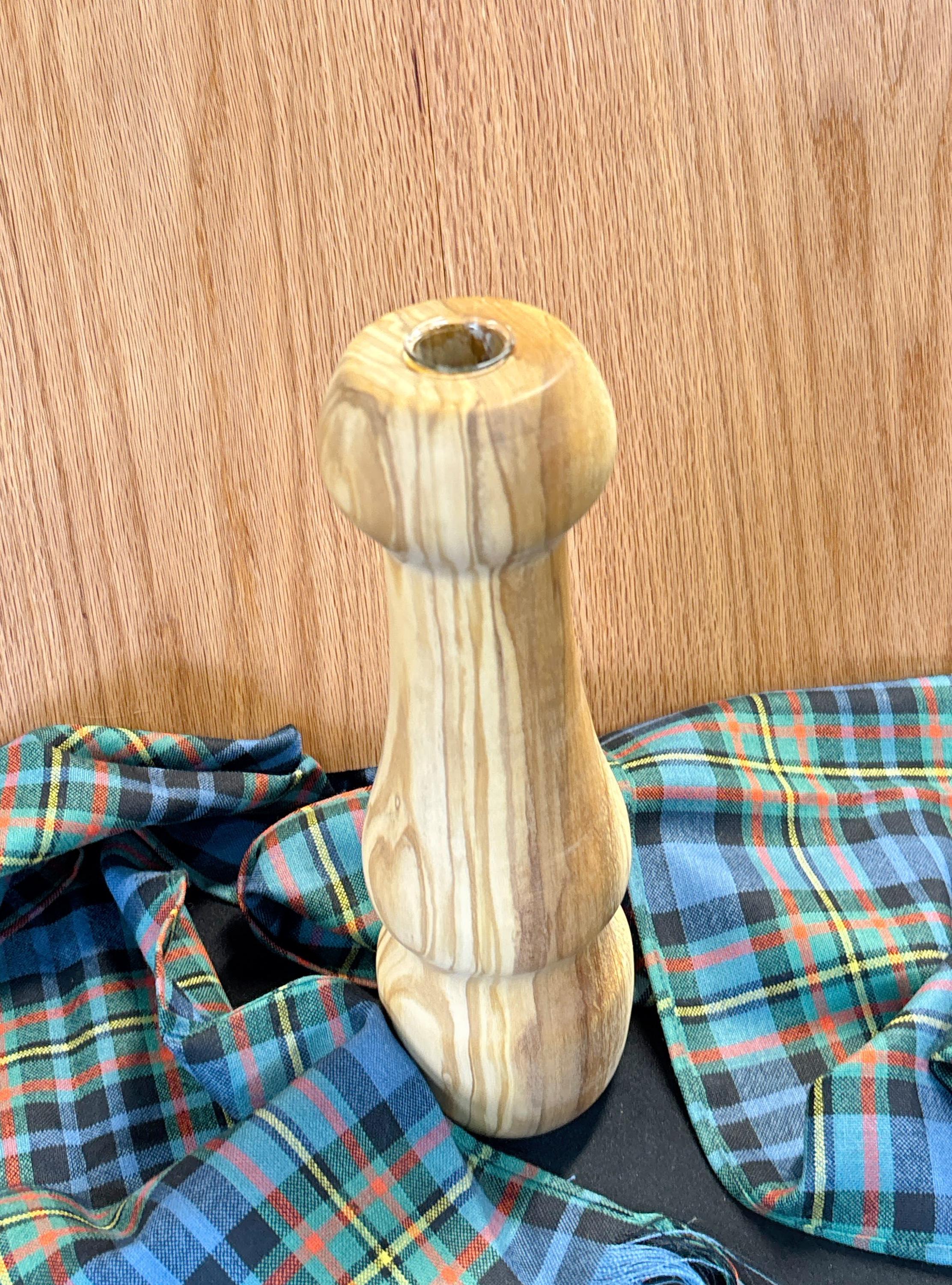 This 12" Olive wood vase is ready to display your latest flower display. The 6" deep glass insert is water-tight so that you can display cut flowers, or use it for a decorative faux flower display. The olive wood vase will also offer a slight aroma to your home that is delightful to all.