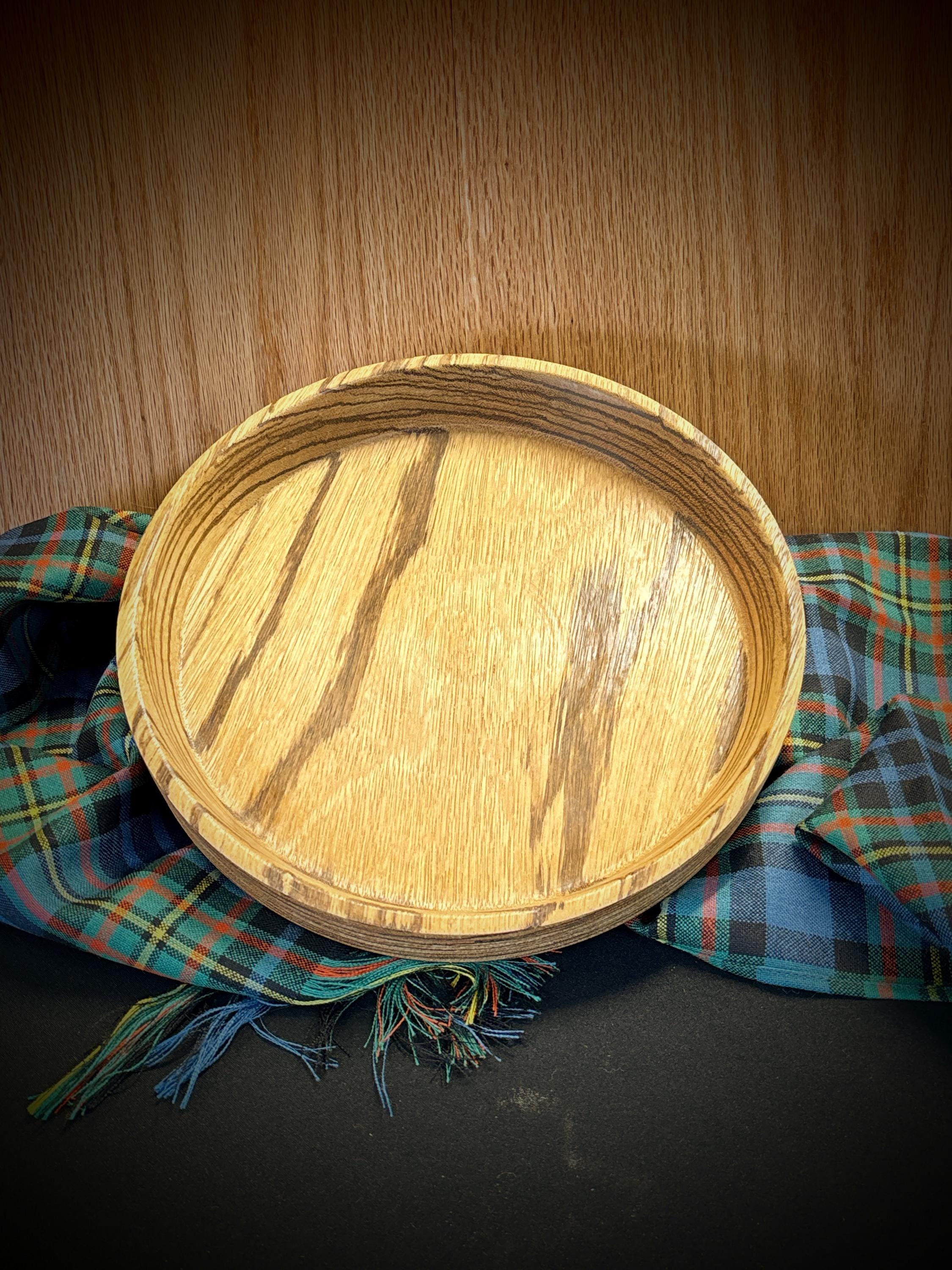 This unique wood platter is deep enough (1" depth) to be used as either a serving platter or small dish serving bowl.